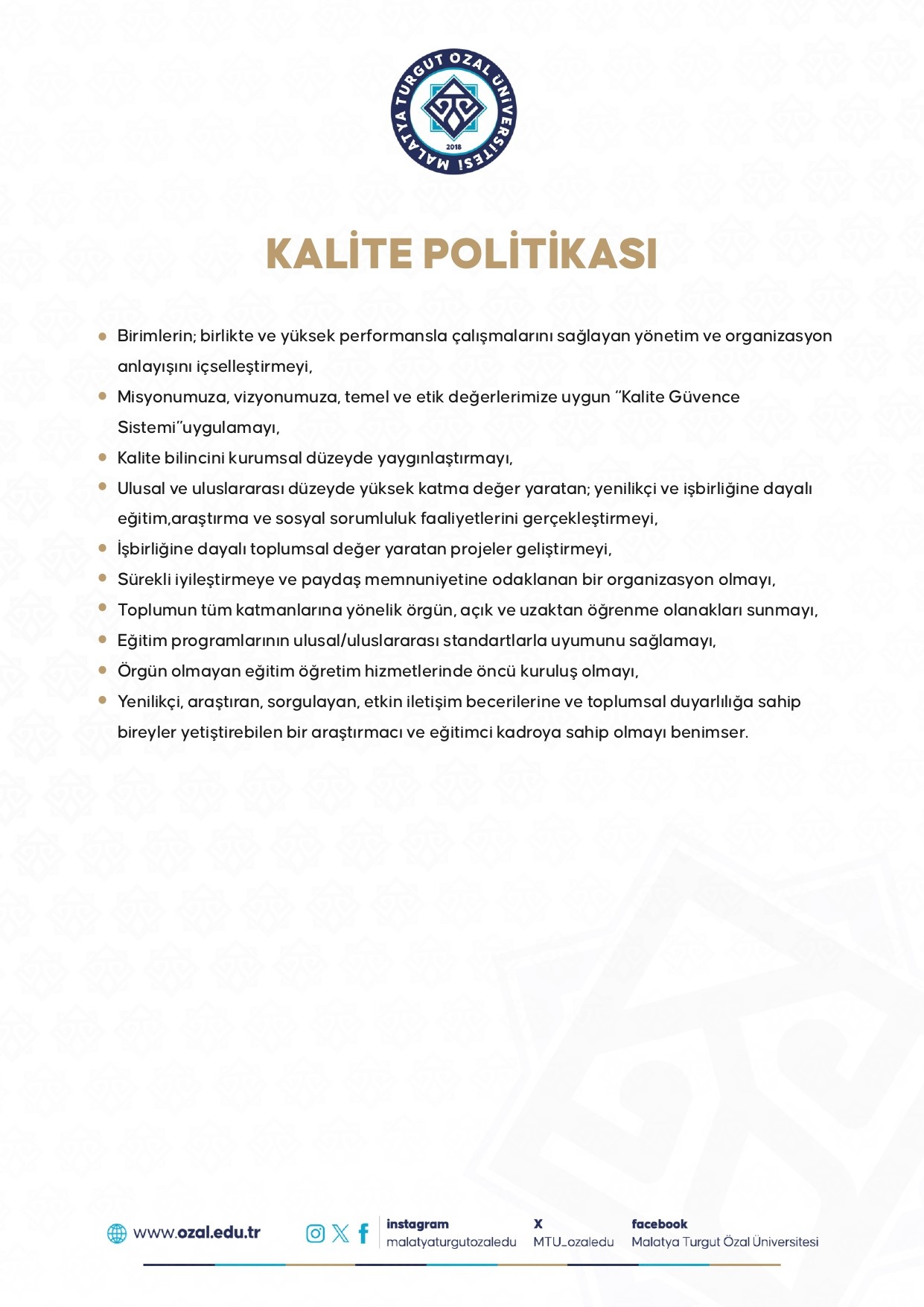 Kalite Politikası